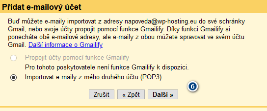 - Nechte zaškrtnutou volbu Importovat e-maily z mého druhého účtu (pop3) a pokračujte na Další >>