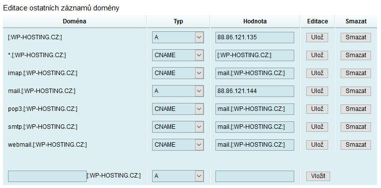| smtp.[:WP-HOSTING.CZ:] | CNAME | mail.[:WP-HOSTING.CZ:] | |
